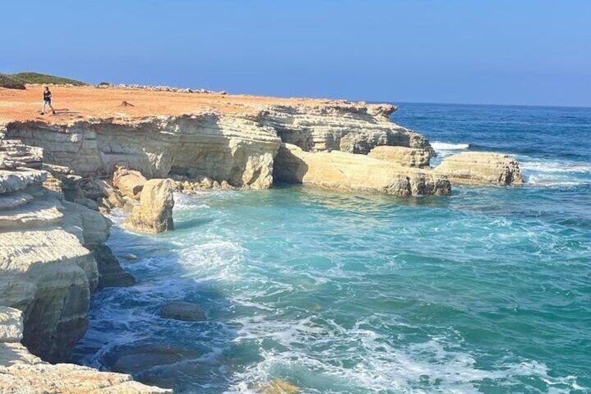 The Sea Caves of Peyia, stretching along the rugged coastline near Coral Bay, are one of Cyprus’ most captivating natural wonders. Sculpted by centuries of waves and wind, the caves form dramatic arches, hidden chambers, and cliffs that plunge into turquoise waters. This wild seascape is both mysterious and beautiful, making it a favorite spot for photographers, nature lovers, and adventurers. At sunrise and sunset, the golden light enhances the raw textures of the rocks, creating breathtaking views. The area is also home to marine life, and lucky visitors may spot turtles or seabirds along the cliffs. Easily reached from Coral Bay, the Sea Caves offer a perfect mix of natural drama and tranquility, whether admired from the shore, explored by boat, or captured as a postcard-perfect memory of Cyprus’ untamed coast.