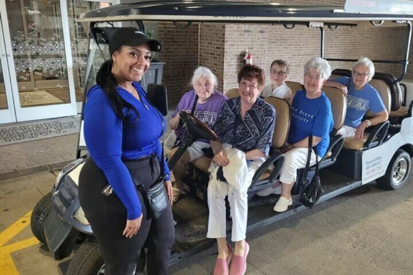 - Si el clima parece demasiado frío para el carrito de golf, ¡puede reservar un recorrido en nuestro autobús de enlace!