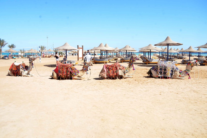 Hurghada: paseo en camello por el mar y el desierto con cena, espectáculo y observación de estrellas