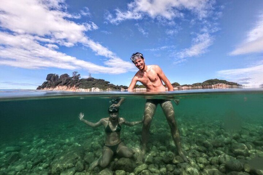划皮划艇前往圣杰罗林岛进行浮潜活动