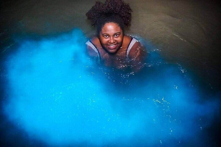 发光的泻湖光芒在黑暗的船游览从蒙特哥湾