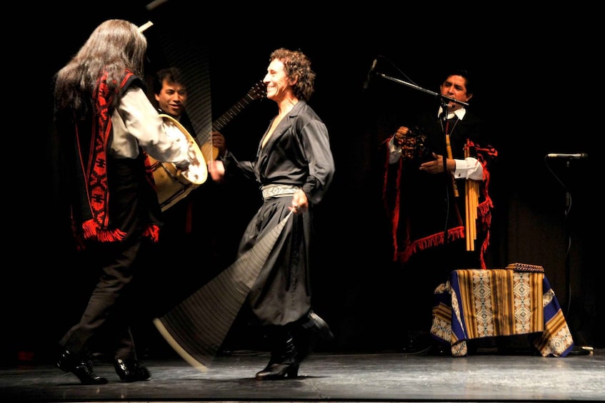 The great orchestra of Juan D´Arienzo and a quintet. Two tango singers, five dancing couples, music from the Altiplano and a Folcloric ballet with a show of boleadoras. 32 performers on stage.