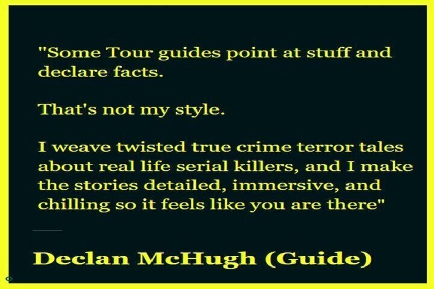 - I would seriously consider choosing a different Tour if you have mobility/significant health issues. It’s a fairly brisk pace – it has to be to cover 10 serial killers in two hours - and we cover 2 miles (3.2 km). And in Summer it can be hot all through the two hours. Truthfully (and quite apart from the subject matter), this Tour will not be suitable for everyone because of the distance and the reasonably fast pace. This Tour is also not recommended for people in their 70s because, as I said, it's quite fast-paced and we cover about 2 miles =3.2 kms.