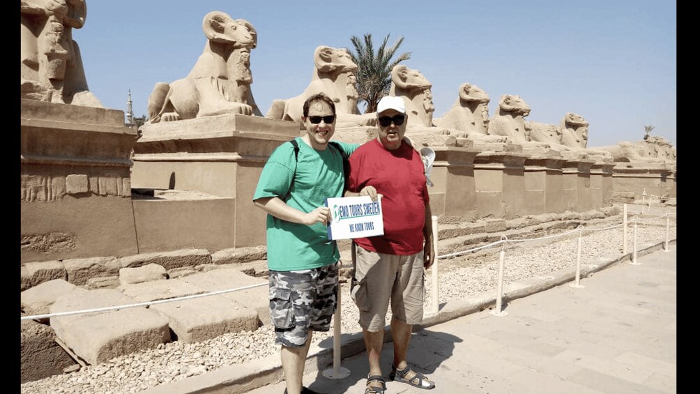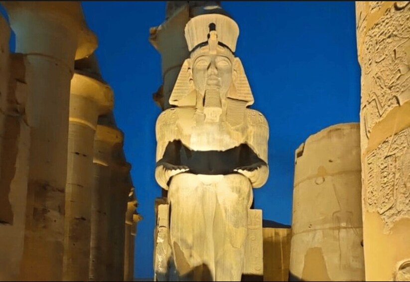 Afterwards, you'll visit the Valley of the Kings, where rock-cut tombs were excavated for pharaohs and nobles of the New Kingdom. Then, you'll see the Mortuary Temple of Hatshepsut, built for the Eighteenth Dynasty pharaoh Hatshepsut in 1458 BC, and the Colossi of Memnon, two massive stone statues of the Pharaoh Amenhotep III. Admission tickets are included for all visits. You'll then be driven back to your hotel.