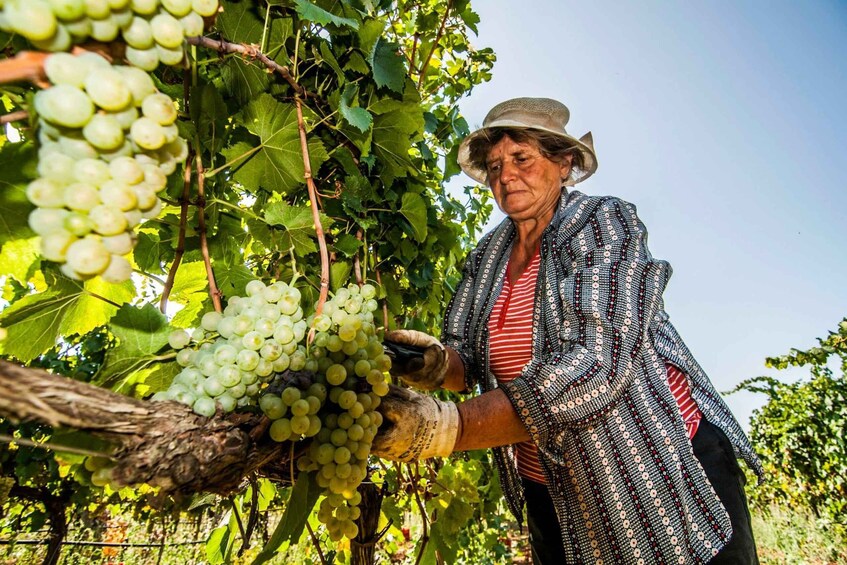 Disfrute de una degustación de vinos y comidas locales en una bodega y un viñedo que ofrecen vistas panorámicas de la tierra. Rodéate de olivos, piedras de paredes secas y el vasto viñedo.