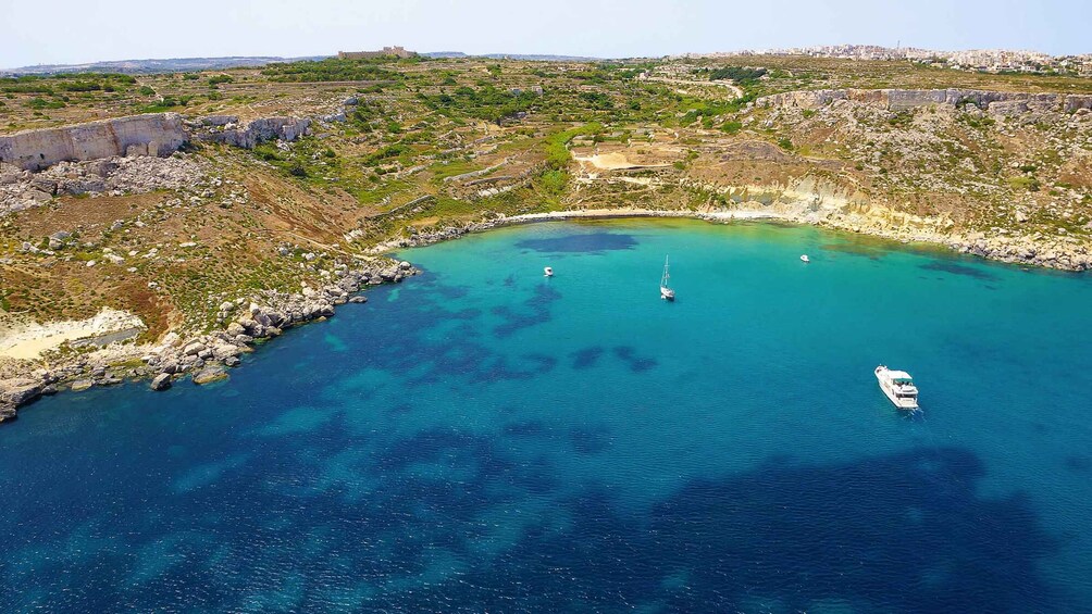 The packed lunch includes a traditional Maltese “ftira” (a traditional leavened Maltese bread with fillings such as tuna, fresh tomatoes, onions, capsers, and olives), some savoury snacks, and a bottle of mineral water.
