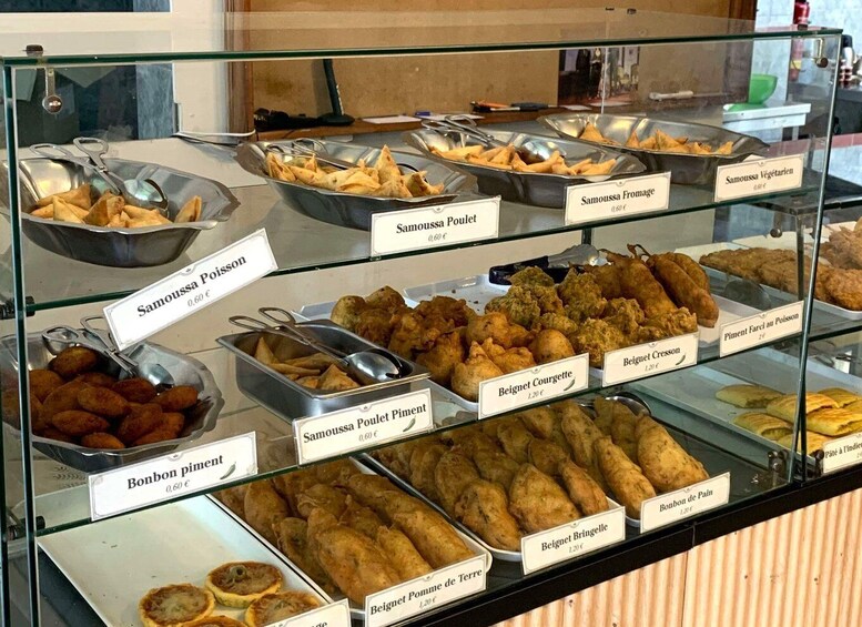 Some food you might taste on the tour : Samossas, gâteau patate, sarcives, bouchons, cari… etc