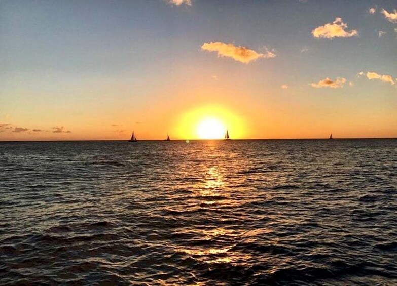 Disfrute de la belleza de la costa sur de Oahu mientras navega hacia el cono de toba volcánica de Lēʻahi (cabeza de diamante) mientras el sol se oculta en el horizonte en este recorrido desde Honolulú.