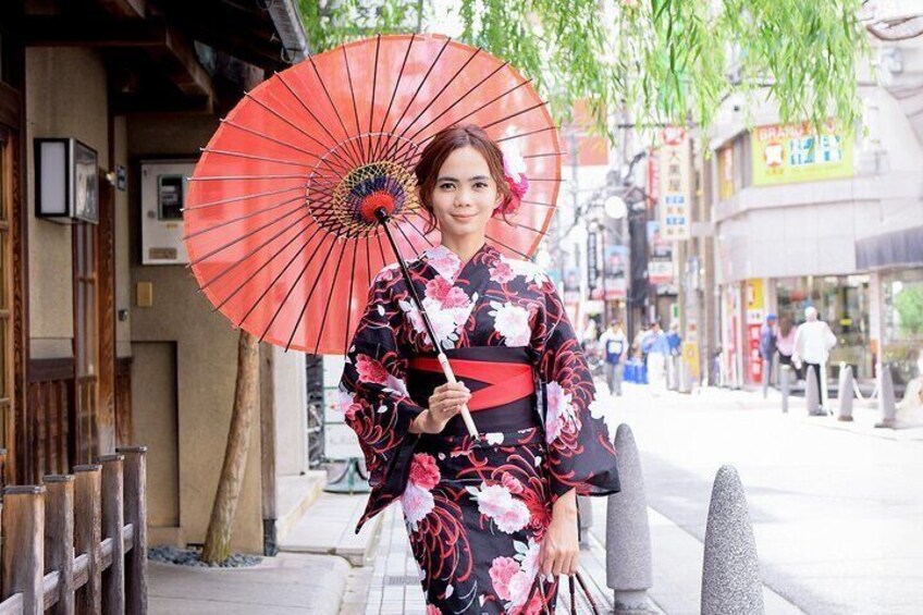 At the studio, you can choose your favorite yukata, get your hair done, and get dressed in the kimono.