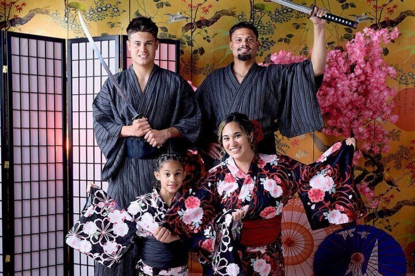 Wear a kimono and take photos in the studio or outdoors.