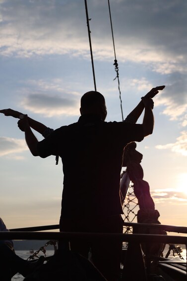 在船前集合并出示船票登船。找到一个舒适的地方并安顿下来,等待船驶向大海。您可以前往船上的酒吧,喝点水、果汁或一杯白葡萄酒来放松一下。