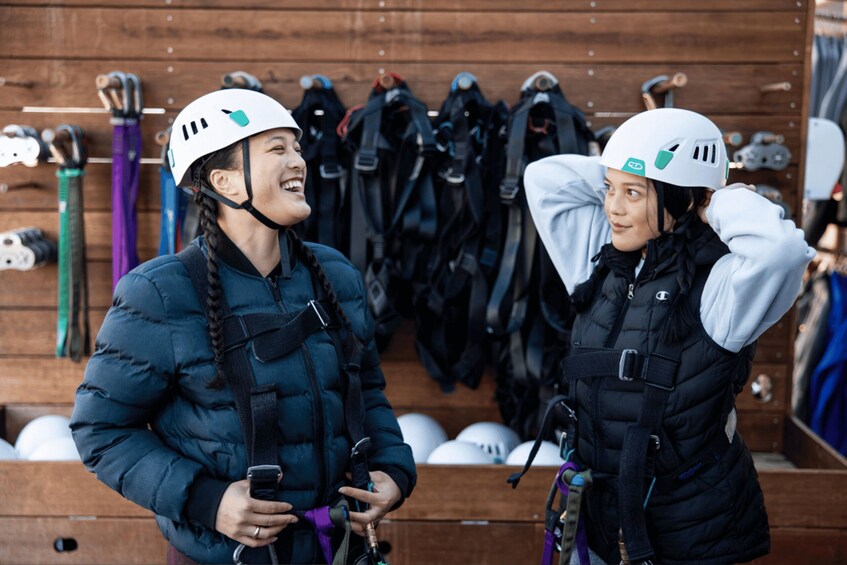 You'll fly through the canopy on a series of ziplines that gradually build confidence, height, and speed. Each line brings new views, new heights, and the rush of feeling alive! The longest zipline is 220 metres long, and the highest platforms are perched high above the forest floor. Between the ziplines, you'll cross suspended swing bridges, walk forest trails, and stand among towering native trees that are over 1000 years old.