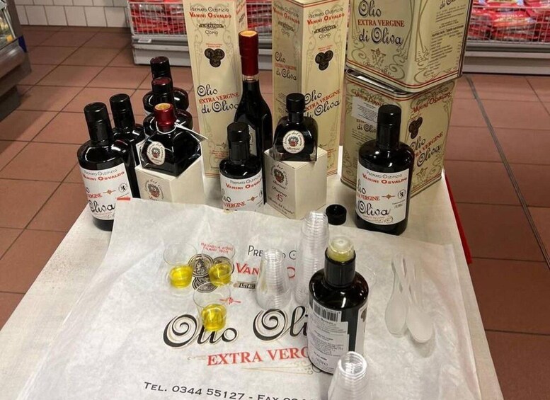 In the shop, find a selection of locally produced honey, olive oil-based cosmetics, and a variety of flavored olive oils, perfect for enhancing your culinary creations. During the olive harvest season, see the state-of-the-art continuous extraction mill in operation, producing high-quality DOP extra virgin olive oil.