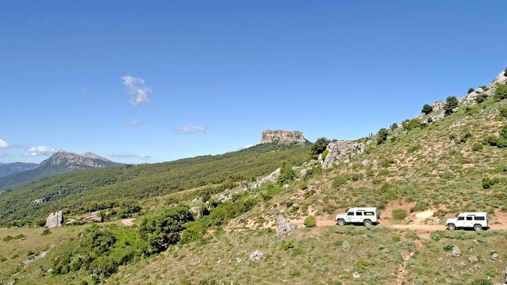 Our expert guide will accompany you on a walk to the top of Monte San Giovanni, at 1316 meters, and at the end of the morning you will get to know the famous murals for a guided tour of about an hour, to understand the importance and value of these wonderful works of art that tell the culture, the history of the country and Sardinia. A day without stress and with the convenience of off-road, with which to explore the most evocative areas of the island.