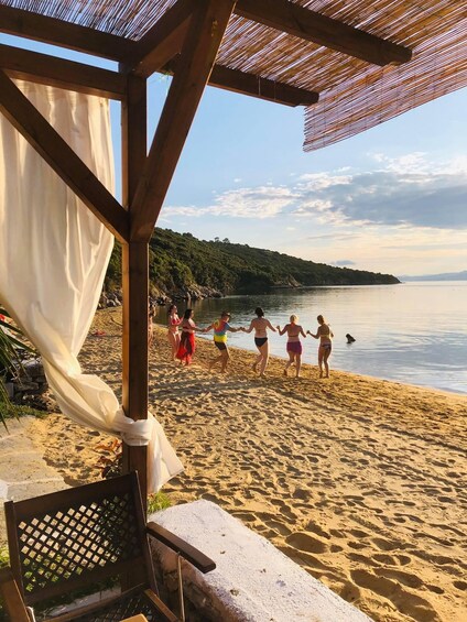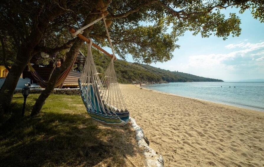-Next stop, Banana beach on Ammouliani island, feel the summer temptation, catch your sunbed and umbrella, listen to the music, taste real greek plates, swim, snorkelling, explore the full green and blue coast.