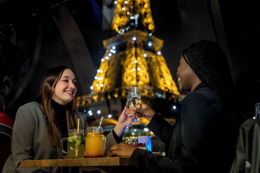 Déjese seducir por el encanto del río Sena en un ambiente cálido y acogedor. Disfrute de un menú degustación, mientras ve caer la noche sobre los monumentos más bellos de París. Te espera una experiencia gastronómica espectacular, cortesía de nuestro Chef y su tripulación. El menú se compone de una selección de sabrosos entrantes, un suculento plato principal y deliciosos postres.