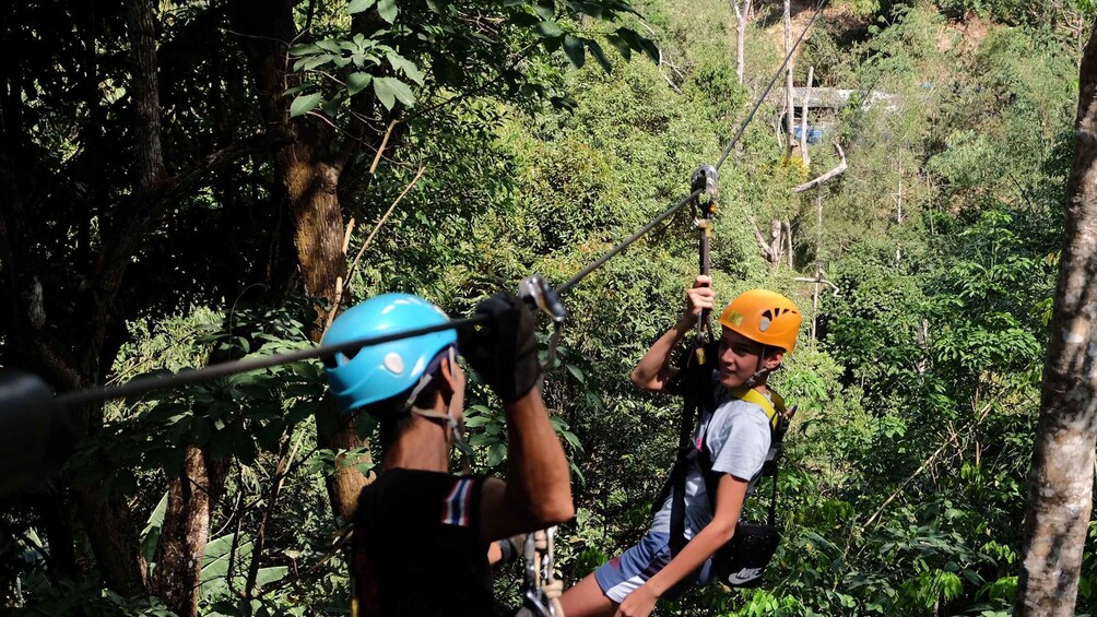 Ride an Atv adventure in the jungle for 40 minutes to changing point to see Big Buddha and Seaview point by car for 20 minutes. Total 1 Hour or 60 mins. Then Zipline for 18 platforms