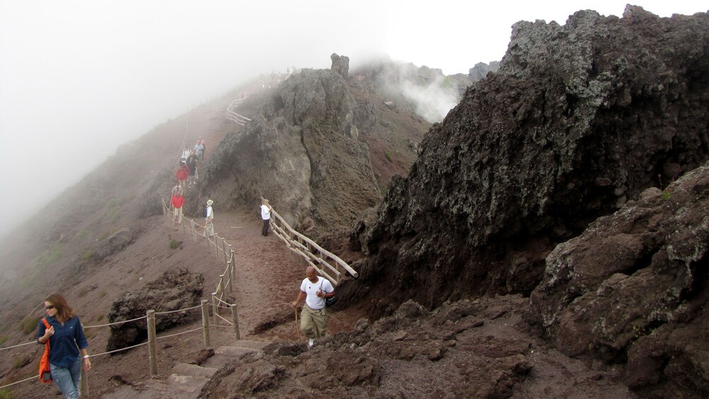 After Pompeii, ascend Mount Vesuvius and savor a delicious meal at a local restaurant with panoramic views of the volcano. You can indulge in an Italian light lunch or partake in a wine tasting featuring authentic local cuisine. Next, follow our driver to an elevation of 1000 meters, and from there, you'll trek to the volcano's summit to witness the awe-inspiring crater. At the peak, a professional National Park guide will provide insights, or you can explore the crater on your own. Marvel at Mount Somma (1133 meters) to the left and Vesuvius' cone (1281 meters) to the right, separated by the striking Valley of the Giant. Mount Vesuvius is both majestic and captivating – a must-visit destination!