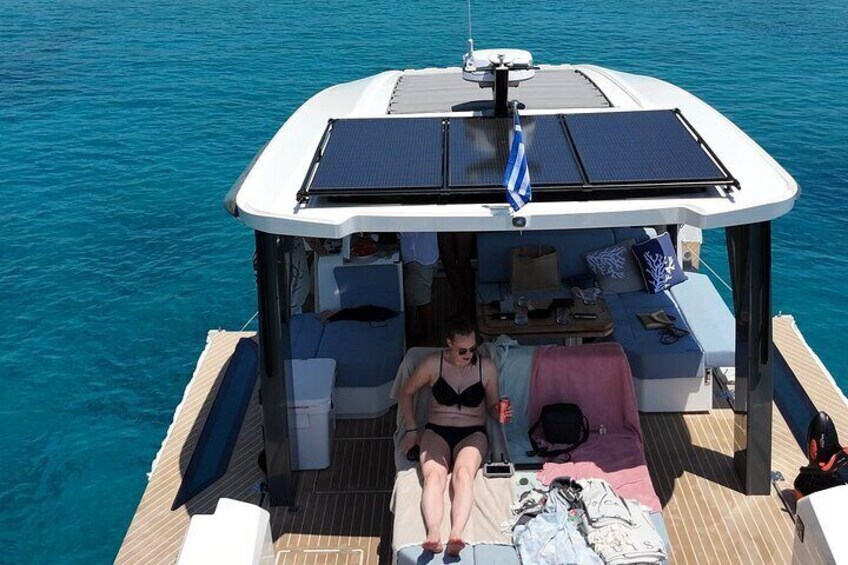 Duration: 3 hours: Cruise through stunning coastal scenery, swim in crystal clear waters enjoy chilled drinks & deli bites & full acropolis view