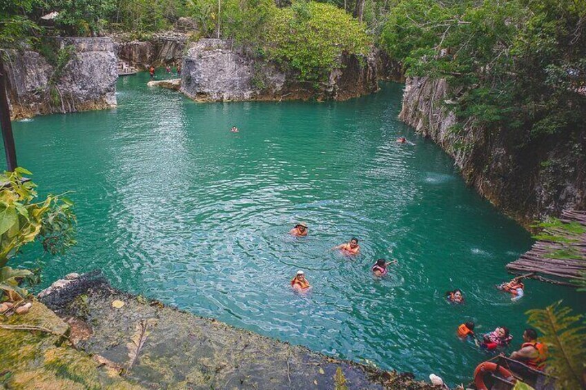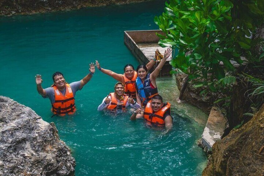 Relaxation activity in two cenotes with food included.