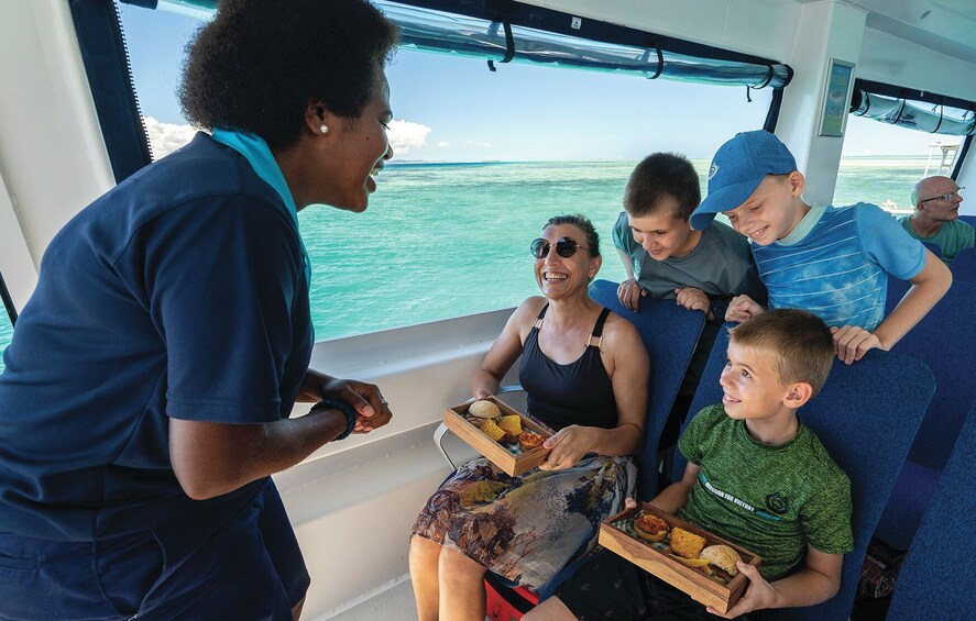 Slide down our giant inflatable slide to snorkel in Fiji’s crystal-clear waters and see the vibrant underwater world come to life on this fabulous extended afternoon half day trip.