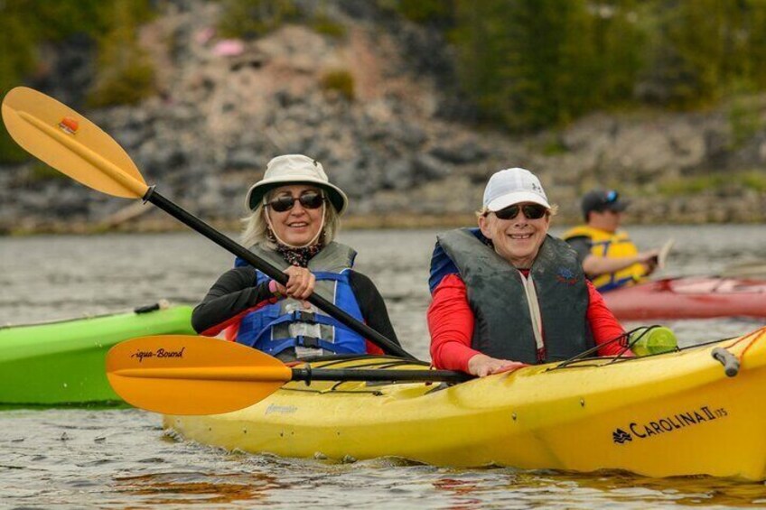 Tandem Sea Kayak: For safety reasons, all guests paddle tandem kayaks; solo travellers may be paired up with a guide or another guest.