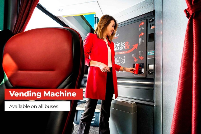 With Itabus, you don't have to worry about luggage space. Our buses have ample room for extra luggage, measuring 80x50x30 cm and weighing up to 15kg. Drinks and snacks are also available for your convenience. Our fleet of single and double-decker buses exudes elegance, comfort, and technology, with innovative features such as 4/5G broadband Wi-Fi for all passengers. In addition, our coaches are equipped with Euro 6D diesel engines, producing the lowest amount of polluting emissions in the market.