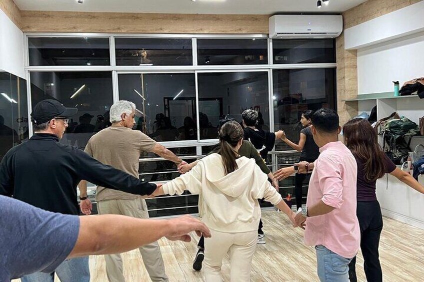 Learn from scratch the steps of salsa and bachata with local professionals in a group between foreigners and locals acquiring the technique of the dance.