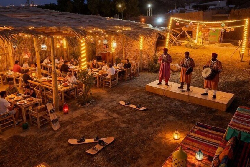 Sunset Sandboarding & Dinner: Experience an unforgettable evening with Sunset Sandboarding and a traditional Moroccan dinner. Glide down the golden dunes