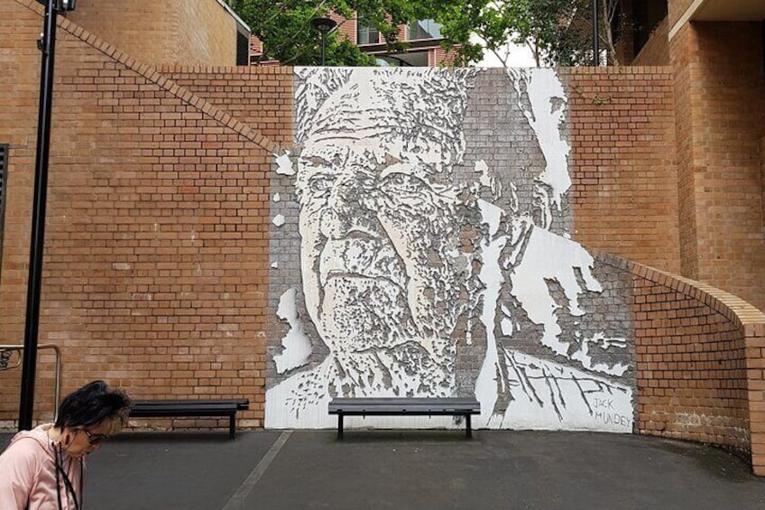 Jack Mundey mural - One union leader in the 1970s said "no." Without Jack Mundey's green bans, bulldozers would have erased all these stories.