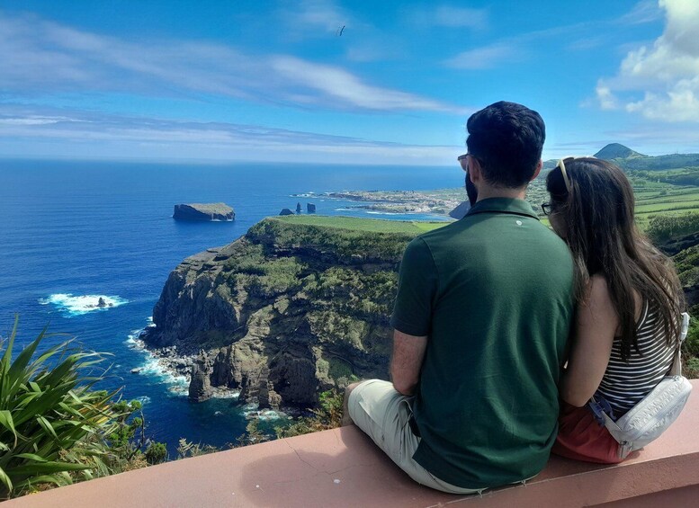 Before returning to Ponta Delgada, the tour includes a stop at the Miradouro do Escalvado, offering spectacular views over the Ilhéus dos Mosteiros and the village of Mosteiros, beautifully situated on a lava-fan coastline. This is the perfect spot to capture the final breathtaking photos of the day.
