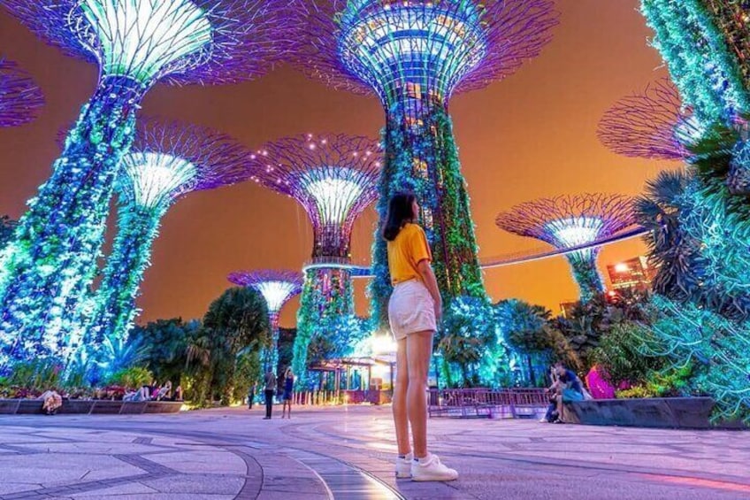 Gardens by the Bay Light Show (30 minutes): Step into a sensory masterpiece of the Supertree Grove, Garden Rhapsody, where vibrant 3D effects amaze you, making it feel as though you've entered the magical world of the Avatar movie. The interplay of light, sound, and towering greenery creates a magical experience that words alone can barely describe