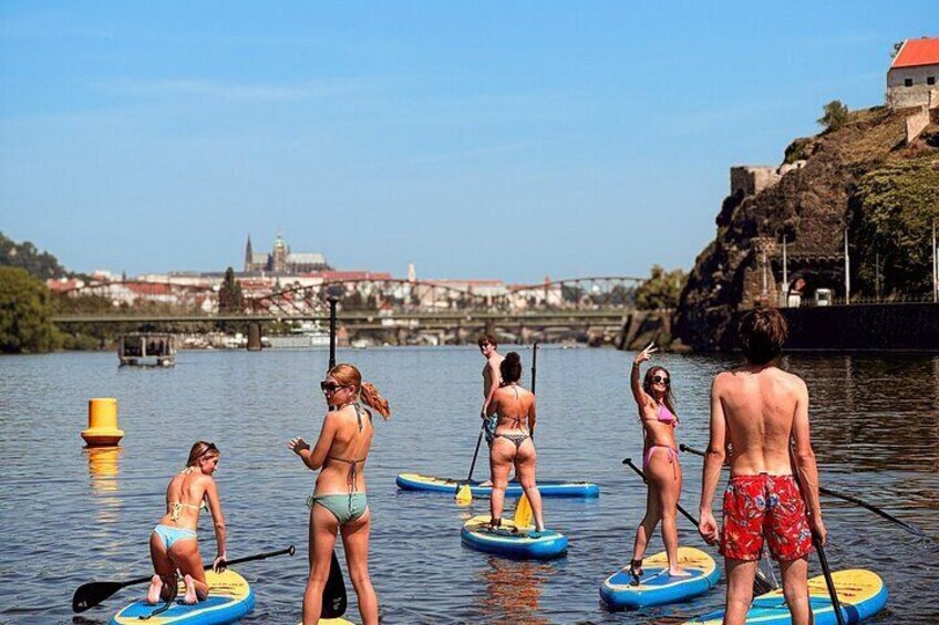 Stand-Up Paddleboarding on the Vltava River in Prague