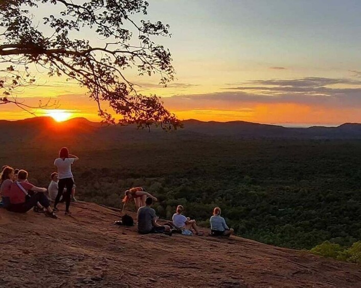 At the summit, take in breathtaking panoramic views of the surrounding jungle, villages, lakes, and of course, the majestic Sigiriya Rock Fortress standing proudly in the distance. It’s the perfect time to relax, enjoy the peaceful atmosphere, and capture incredible photos as the sky turns vibrant with colors.