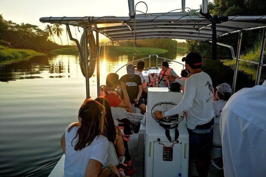 Sunset in the manialtepec lagoon with bioluminescence
