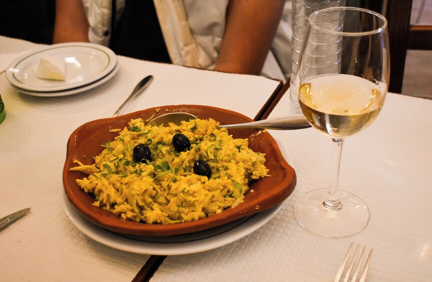 Our tour invites you to try a selection of 3 different local dishes, called 'petiscos'. The word ‘petiscos’ in the Portuguese language translates as ‘small dishes to share’. One of the top 3 bacalhau dishes in Lisbon will be part of the tasting. In the end you’ll have the chance to taste our surprise drink to get the full Portuguese culinary experience.