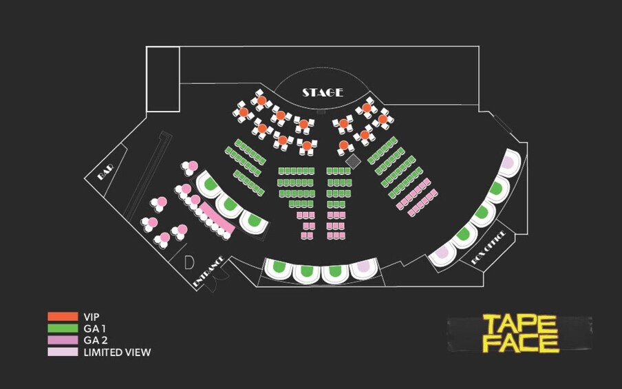 Category A VIP ticket includes: a Tape Face Swag Bag with a Tape Face Shirt, Signed Cartoon Photo, Souvenir Poker Chip and a Tape Face Lanyard.