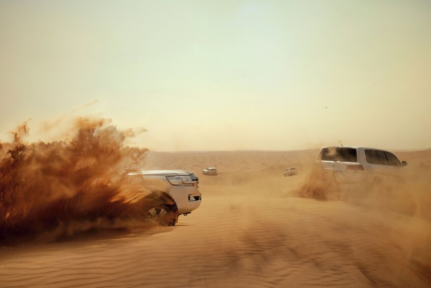此选项包括乘坐四轮驱动车在沙漠野生动物观光进行沙丘冲刺,然后是沙漠营地晚餐,包括五星级自助餐、现场娱乐和往返接送。此套餐还包括无限量软饮料和瓶装水。