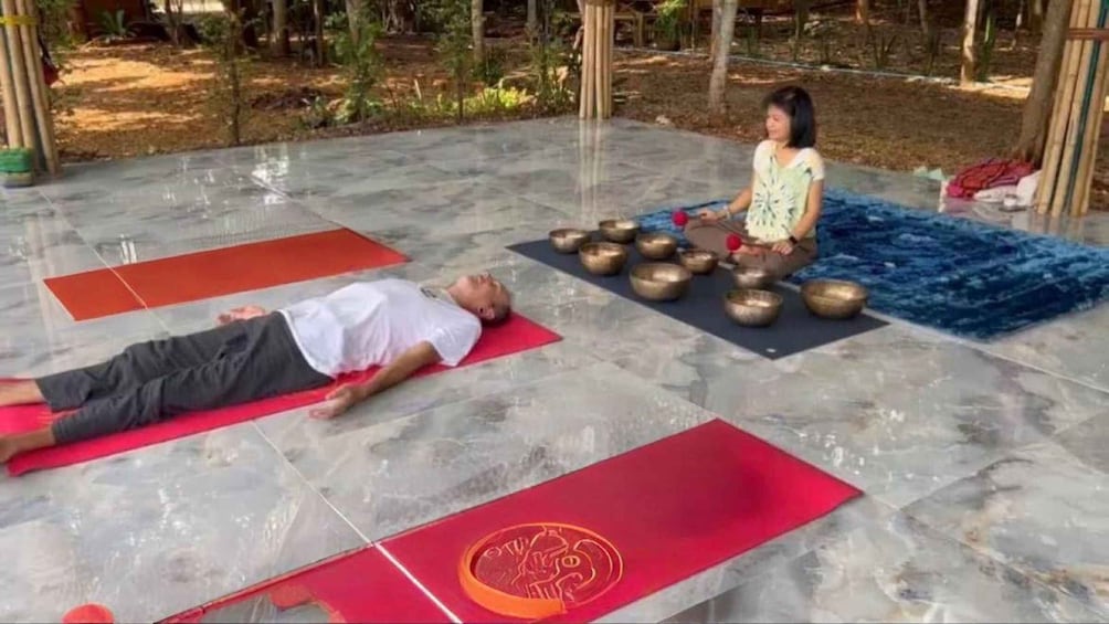 Relax into harmony as Tibetan singing bowls create soothing vibrations around or on your body. This ancient sound therapy eases stress, restores balance, and promotes deep physical, emotional, and energetic healing and mental clarity.