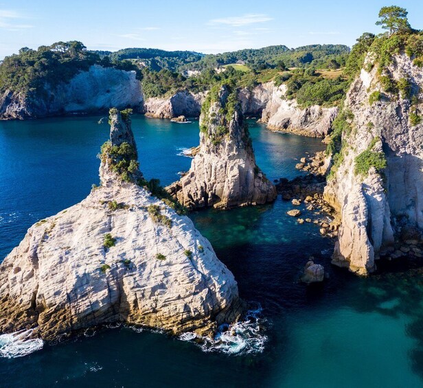 The highlight of the tour is the world-famous Cathedral Cove at Te Whanganui a Hei Marine Reserve. The site has a rich Maori heritage, attracts more than 150,000 visitors per year, and was used as a filming location for the blockbuster movie Narnia.