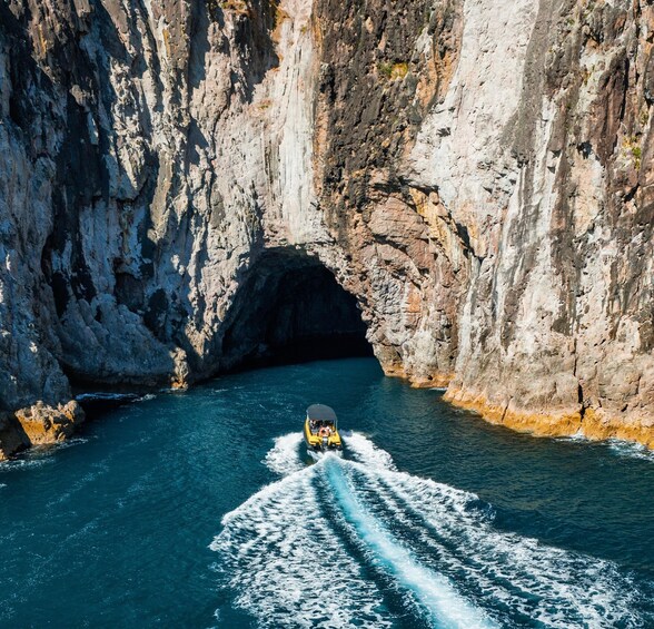 Explore Cathedral Cove from the luxury of our purpose built tour boat, complete with sunshade and cushioned seats. This scenic boat cruise strikes the perfect balance of comfort and professionalism, and showcases Mercury Bay’s stunning coastal paradise at its finest. Embark on a 2-hour journey across the rugged volcanic shores of the bay and explore its beautiful beaches including Hahei and Lonely Bay. We’ll get you closer to the key attractions than bigger boats can, and provide a service that’s second to none.
