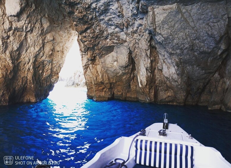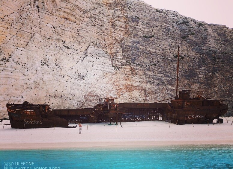 You don't have to travel far to admire Navagio, one of the most breathtaking beaches on the globe. The views approaching from the sea are magical and out of this world. The color of the water leaves everybody speechless. Enjoy the cool sea breeze as we cruise past famous archways, dramatic natural rock formations, and the spectacular blue caves.